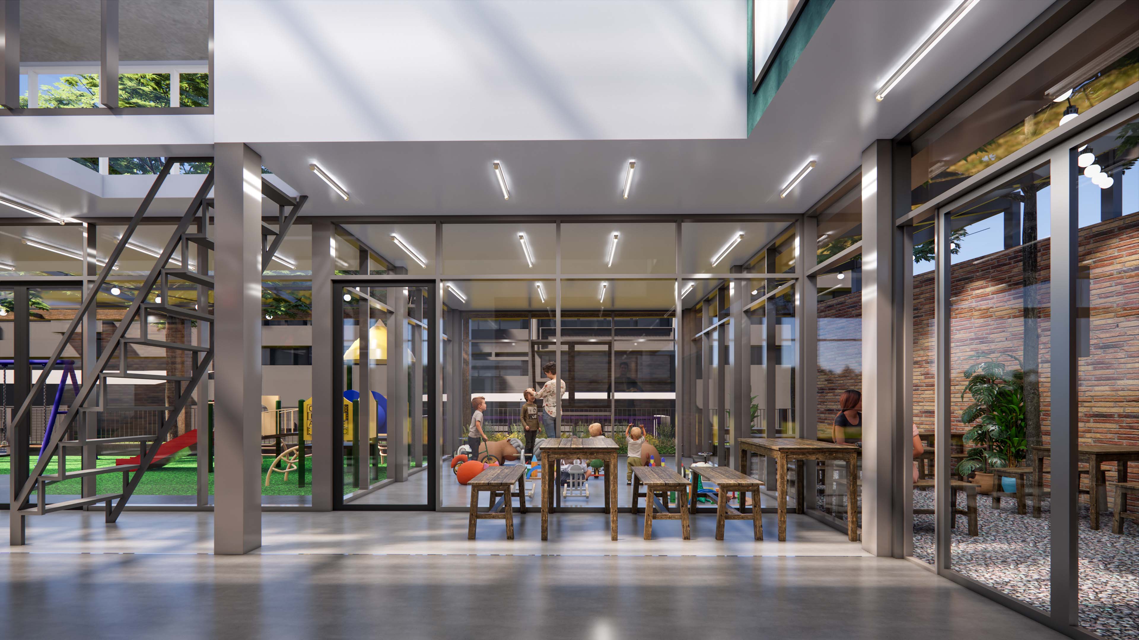 Mô hình "Family-Centric" (Lấy gia đình làm trung tâm): Sự xuất hiện của khu vui chơi trẻ em (Kids Zone) với xích đu, cầu trượt trên thảm cỏ nhân tạo ngay tại mặt tiền là một điểm cộng tinh tế. Thiết kế này phá vỡ sự khô cứng của các khối bê tông thương mại, tạo ra sự kết nối mềm dẻo giữa việc mua sắm của phụ huynh và nhu cầu giải trí của trẻ nhỏ. Hệ vách kính lớn trong suốt (floor-to-ceiling glass) đóng vai trò then chốt: giúp phụ huynh dù ngồi cafe bên ngoài hay mua sắm bên trong đều dễ dàng quan sát con cái, đảm bảo an toàn và sự an tâm tuyệt đối.